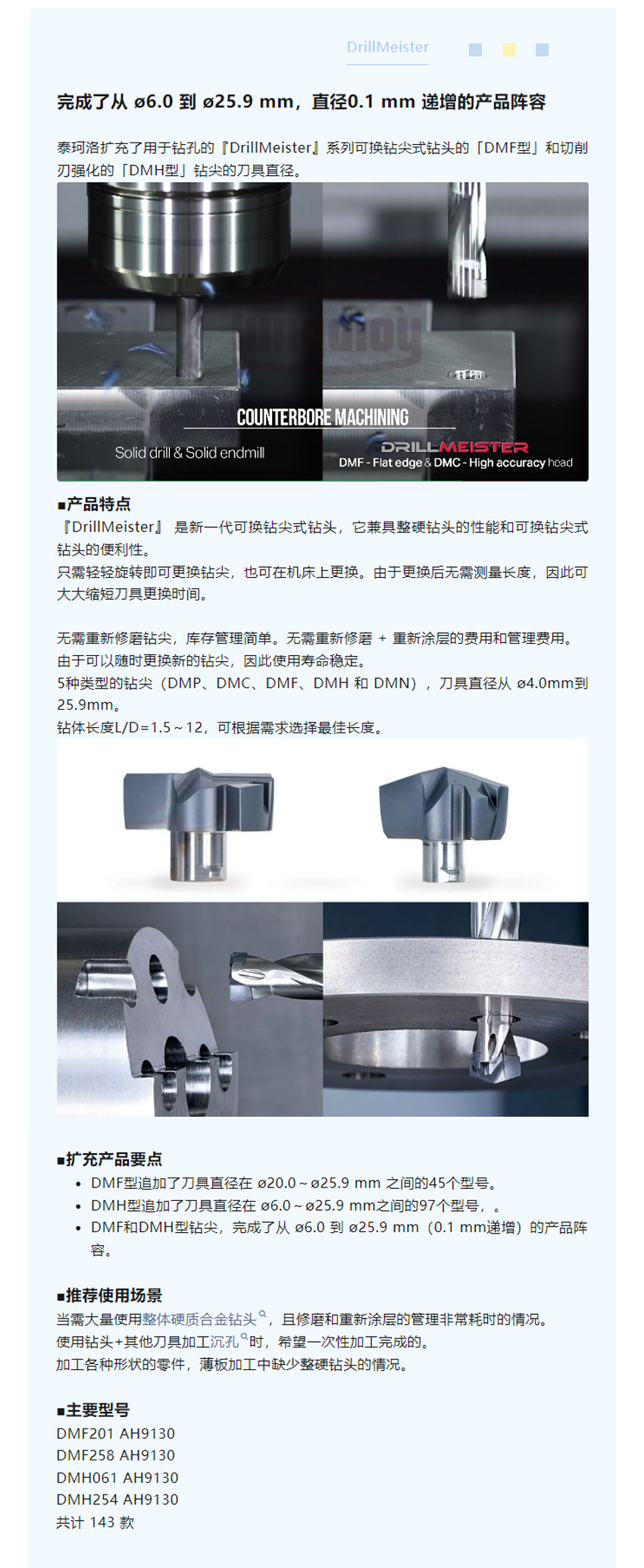【泰珂洛】『DrillMeister』可換鉆尖式鉆頭擴(kuò)充「DMF型」和 「DMH型」鉆尖尺寸