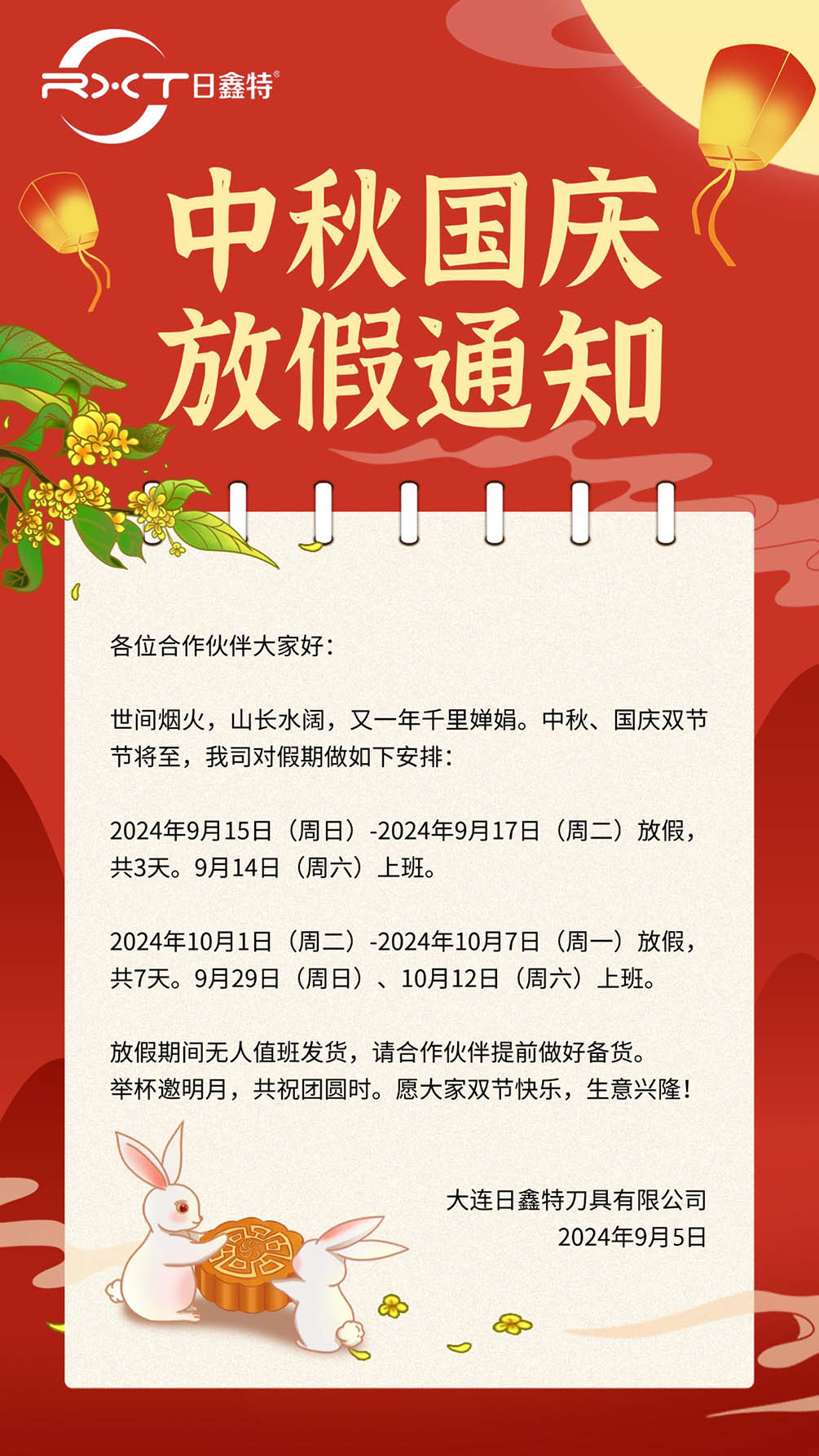 2024中秋國(guó)慶放假通知